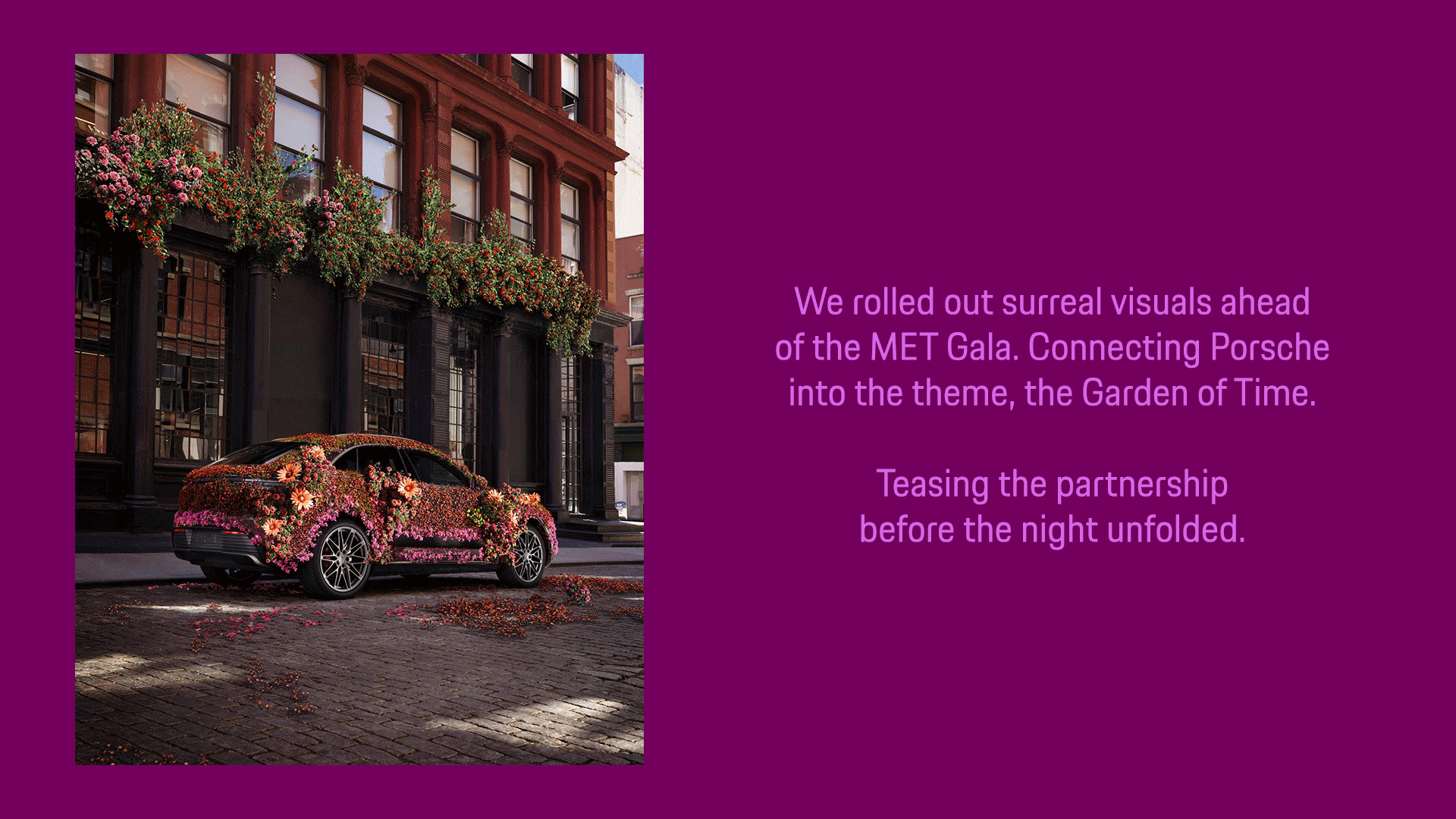 On the night of the MET Gala night, a purple Porsche parade took over the streets of NYC. Making our presence impossible to ignore.